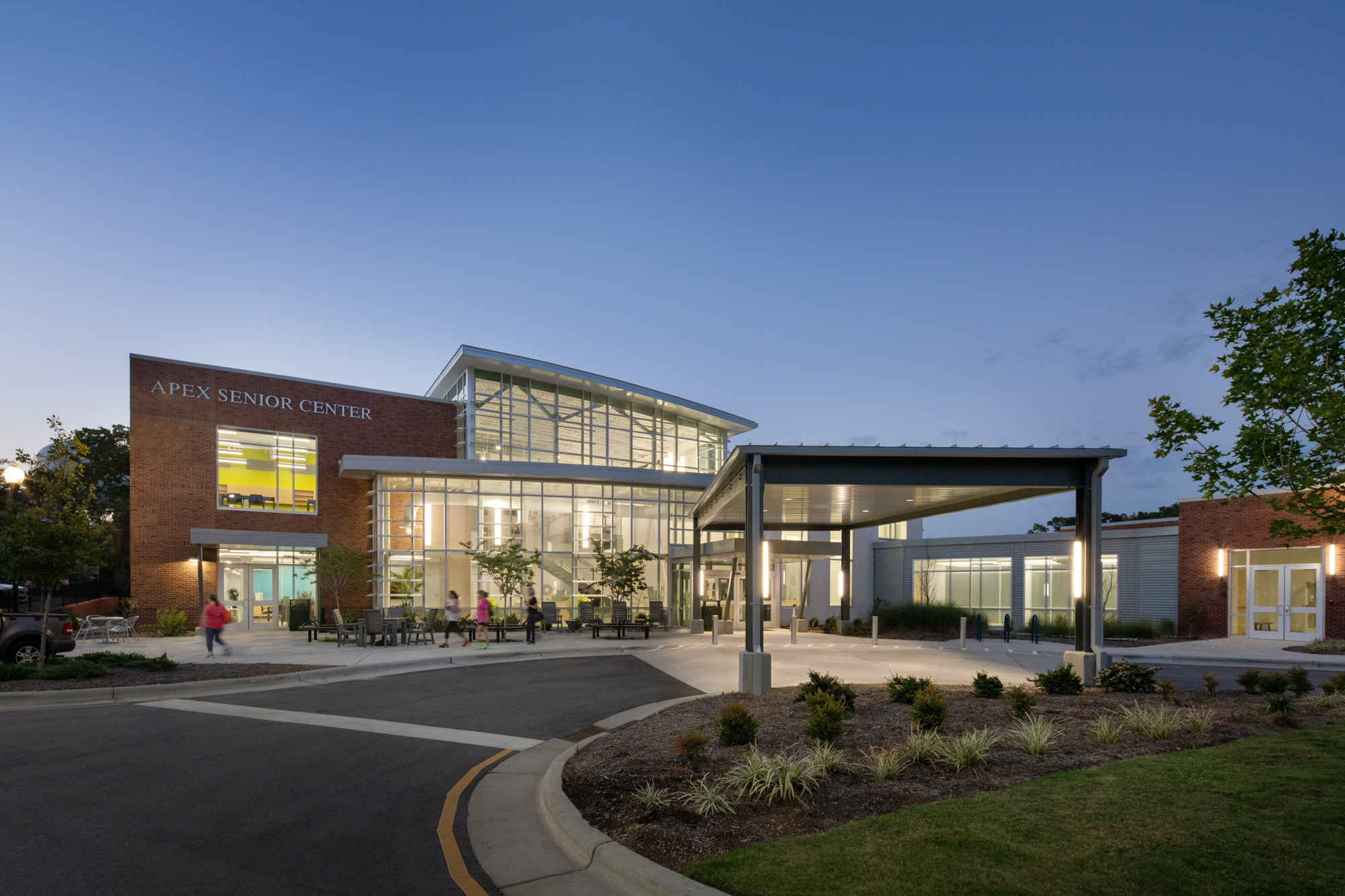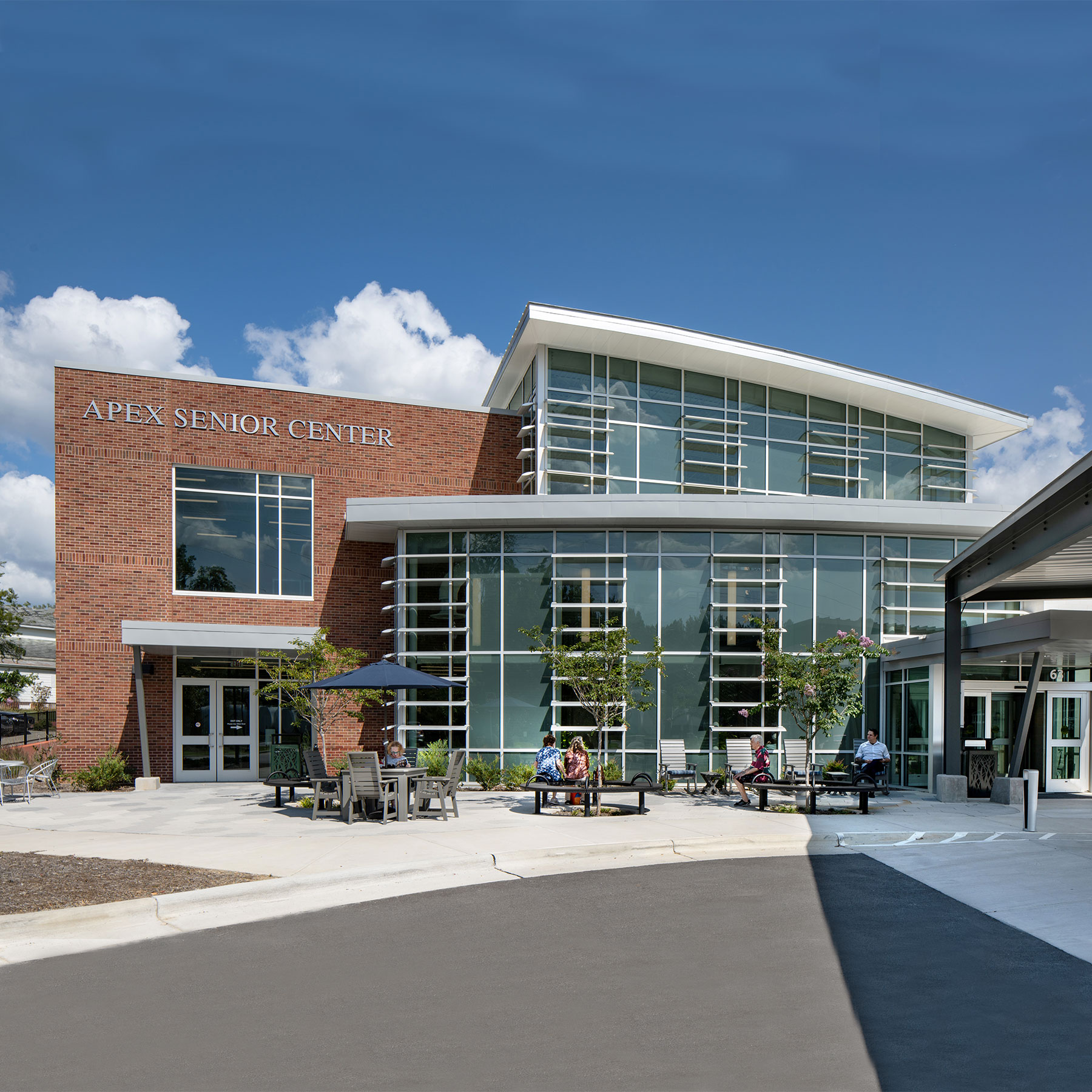 The Town of Apex partnered with Smith Sinnett Architecture to complete a programming study and design the new Apex Senior Center. Located in the heart of town, the 28,000-square-foot facility expands the civic campus, which includes Town Hall and the Community Center. The design process began with a daylong charrette where over 150 local seniors gave their input. Following this, Smith Sinnett worked closely with town officials, stakeholders, and user groups. Together, they developed a program that aligned with the community’s goals and budget.