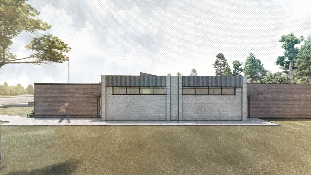 The Reidsville Readiness Center project for the North Carolina National Guard adds a 700 SF entry lobby and a 1,400 SF classroom to the existing 23,000 SF National Guard Armory. Originally designed in 1979 by North Carolina modernist architect Brian Shawcroft, the building features a striking roofline, distinct window patterning, and detailed masonry. Smith Sinnett’s design honors these original elements while introducing modern upgrades to the building.